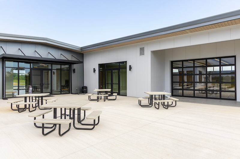 Our contemporary facility features a designated snack and dining area, offering extra seating for meals, breaks, and special events. When the weather allows, an outdoor patio serves as a convenient breakout space for training sessions. Additionally, a standalone 1,200-square-foot garage next to the main building offers secure storage for customers or can be utilized as a supplementary indoor area for practical training activities.