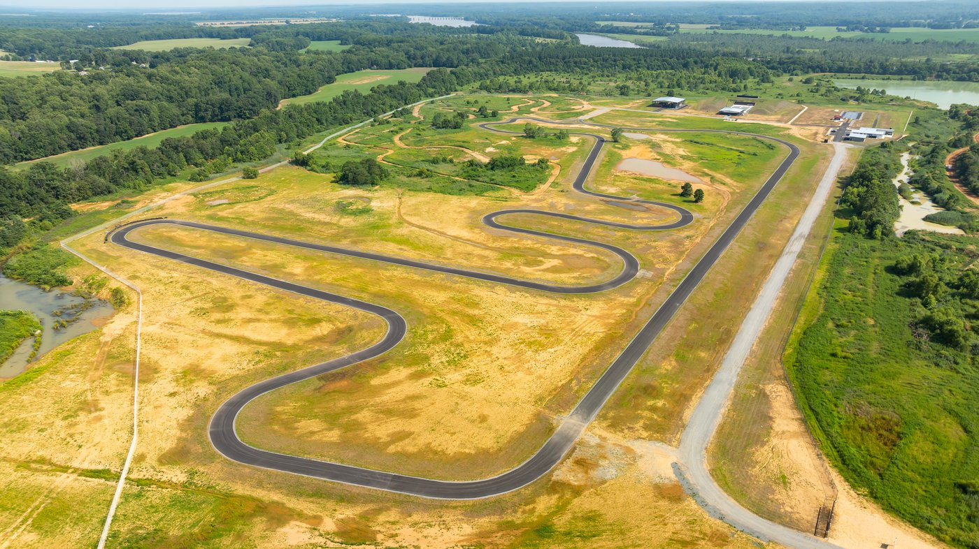 A 1.5-mile paved driving course with various turns and a quarter-mile straightaway segment.